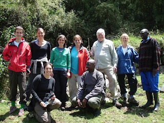 The first step to see the gorillas is to acquire a permit from the tourism office in Kigali. I had tried this twice before since I've been here and found the permits to be sold out. They only allow 50-60 people to go each day and each group can only spend one hour with the gorillas. This week I was invited to join my friend Laurie and her brother Michael and I lucked out by acquiring a permit from someone who was unable to go. We drove up the night before and stayed at a guest house about 300 meters from the Parc entrance. We arrived at the gates of the Parc de National Volcanes at 7AM on Saturday. There are seven groups of gorillas on the volcanic Mt. Karisimbi(4507m), Mt. Sabyinyo(3634m) and Gahinga(3437m) with between 7 and 30 gorillas in each group (roughly 80-90 gorillas all together) and there are only about 700 gorillas worldwide! At around 5AM the gorilla trackers (parc employees) go up into the mountains and find the various groups of gorillas; they then radio the location to the parc guides who alert all of the permit holders how far the gorillas are located. Each group is at least a 30 minute hike up the mountain, with the Susa group (oldest and largest group on the mountain; 30 gorillas) usually a 7 hour hike. There are a maximum 8 people per group; and they ask whether you'd like a long or medium hike. We did not hike to the Susa group (next time!) but we selected a medium distance hike to the HIRWA group (11 gorillas including one silver back, five females, and five babies.)