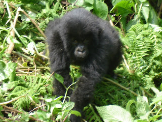 At one point this baby came over to us. But the silver back came and got him and seemed to reprimand him. He ran crying away. It was fascinating.